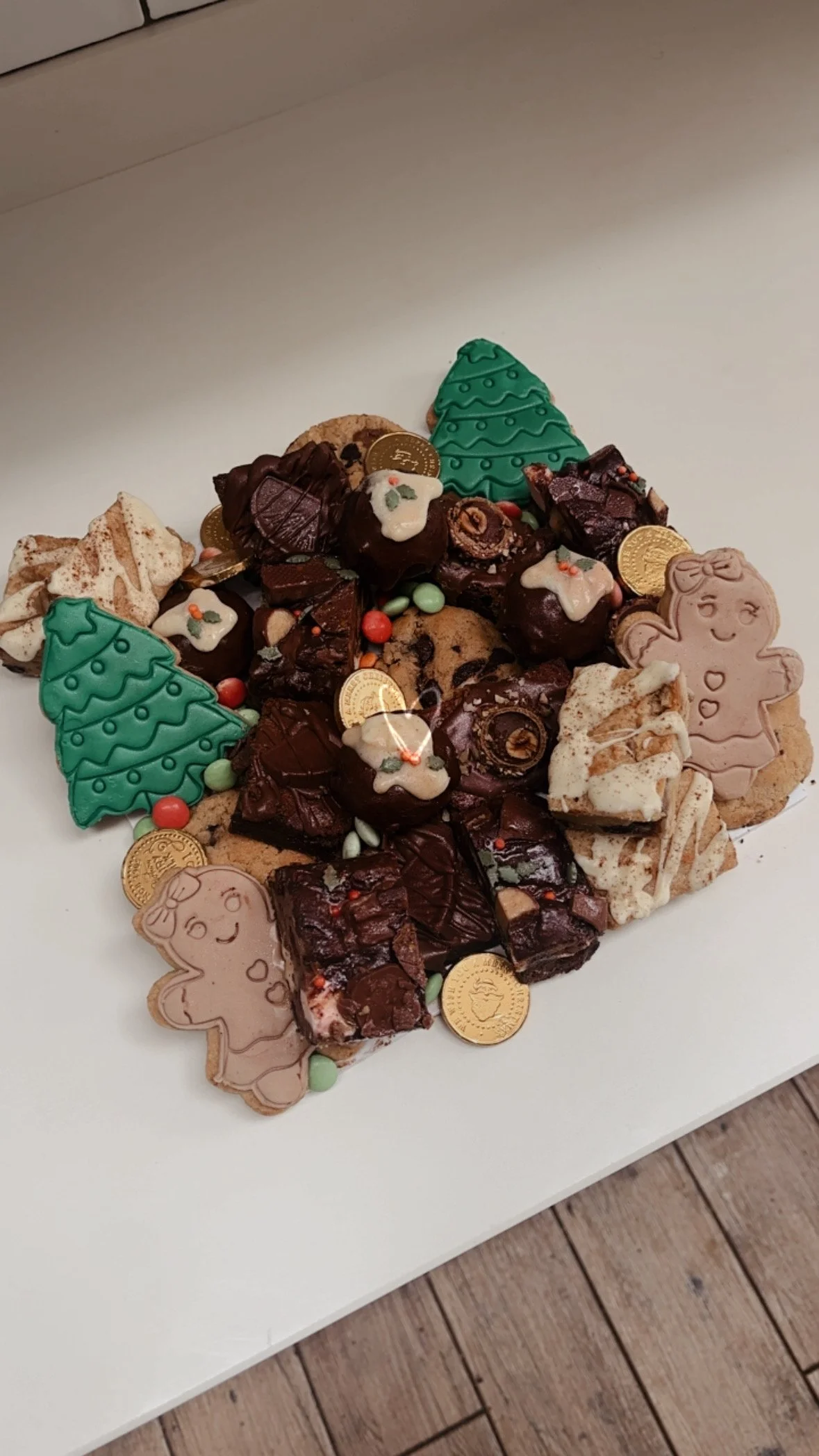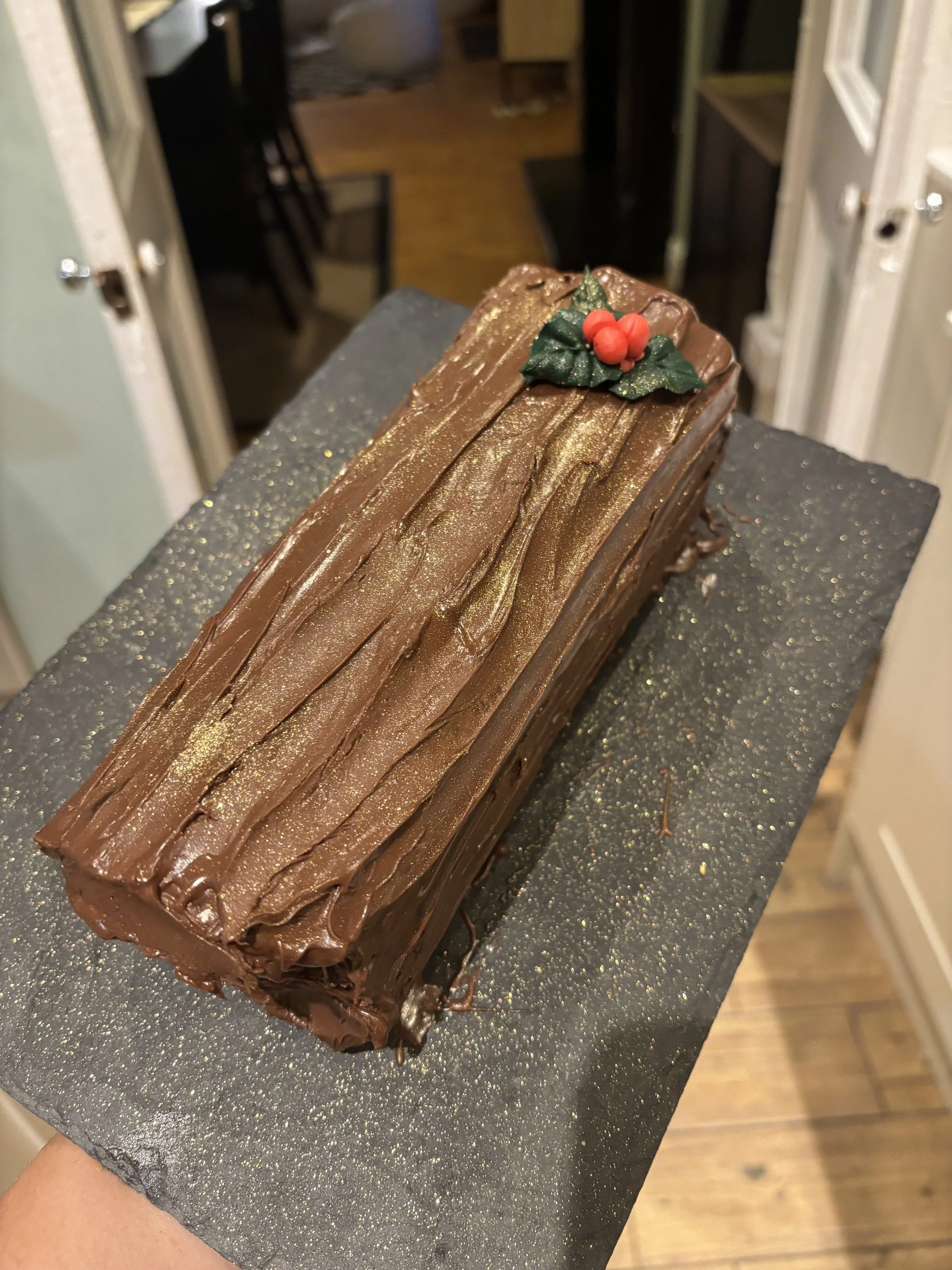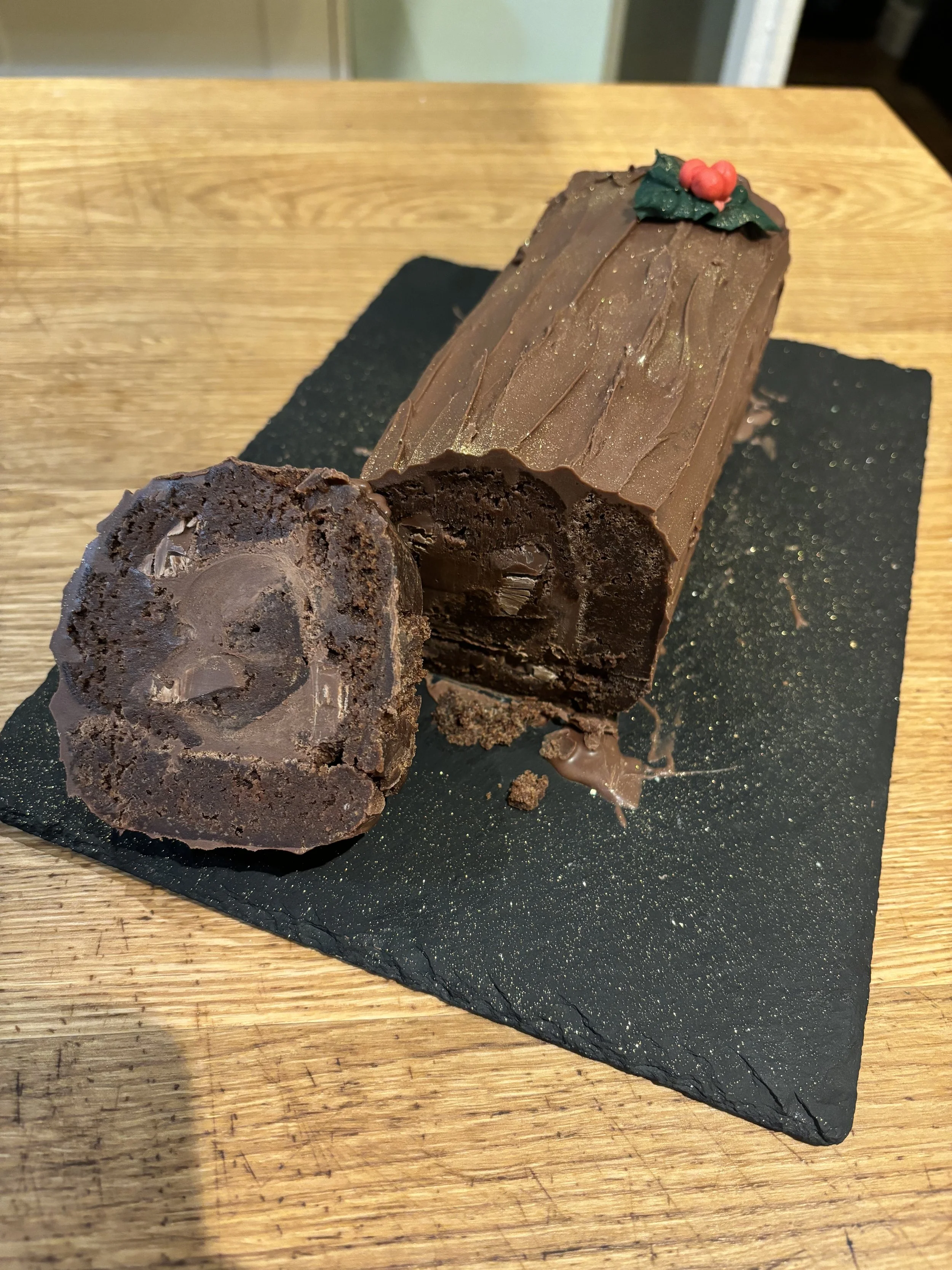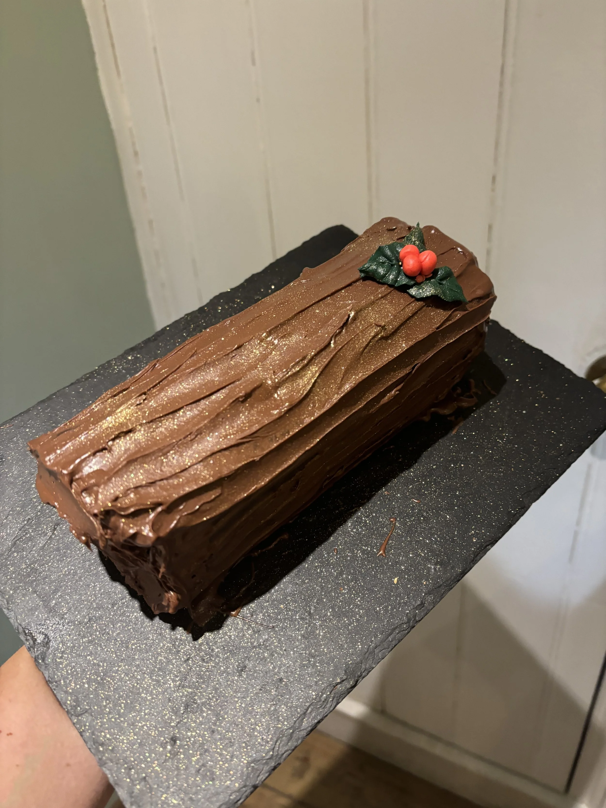 A rich and fudgy brownie, layered with the filling of your choice, covered in milk chocolate and a buttercream holly leaf. Collection 23rd-24th only. This yule log feeds 8-12 people, enjoy warm or straight from the fridge
